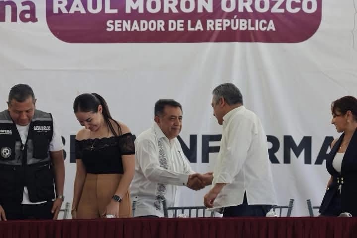 En asamblea informativa, celebrada en el rancho la Flor, el Diputado Federal José Luis Cruz Lucatero recibió al Senador Raúl Morón, para dar a conocer las reformas constitucionales que han sido discutidas en el Congreso de la Unión y que son propuestas por la Presidenta Claudia Sheinbaum .