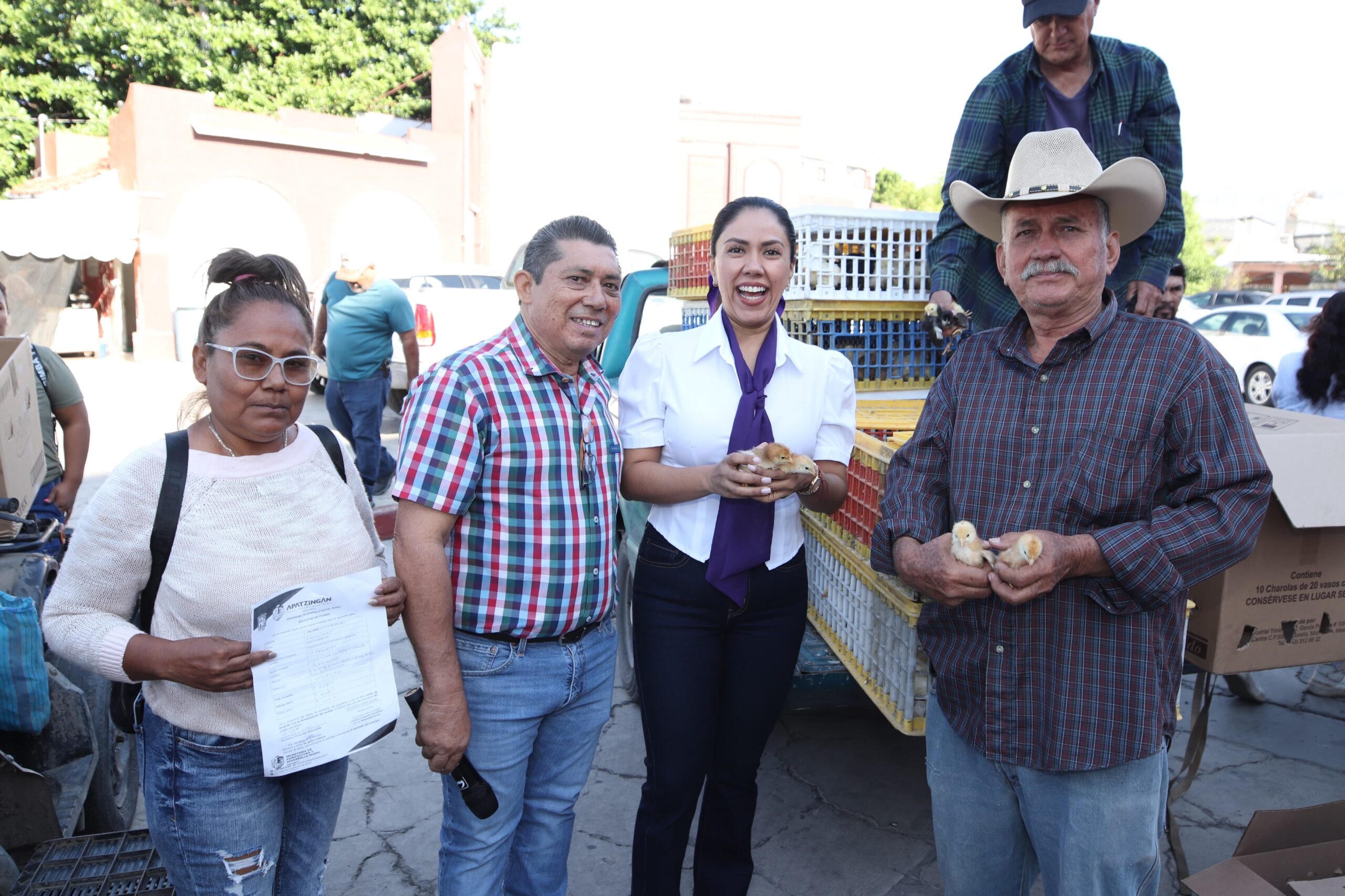 En apoyo a la economía familiar entregan pollas de traspatio.