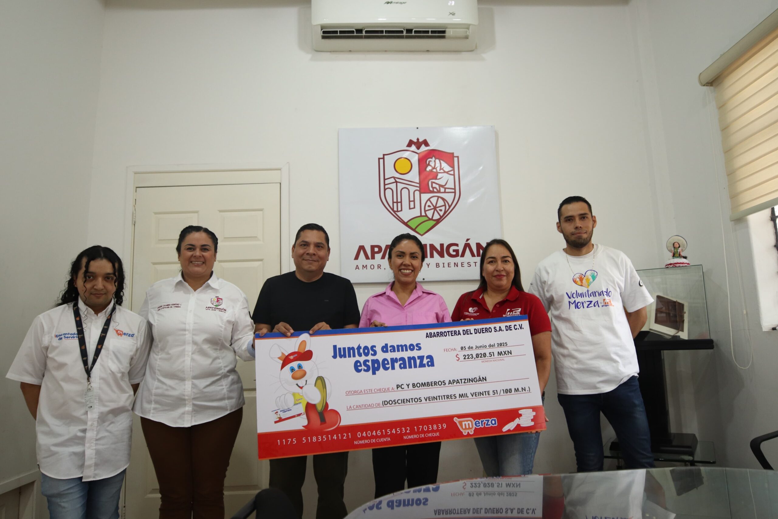 Apatzingán, Michoacán; 08 de junio de 2025.- El Ayuntamiento de Apatzingán recibió un importante donativo por parte de Fundación Merza, resultado de la generosidad de los clientes que participaron en la campaña de redondeo en tiendas del grupo. Este recurso será destinado al fortalecimiento de Protección Civil y Bomberos, corporación que atiende emergencias de forma permanente en el municipio.